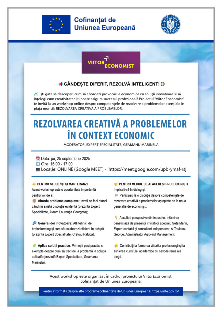 Titlu proiect:ViitorEconomist – Competențele VIITORului pentru studenți ECONOMIȘTi